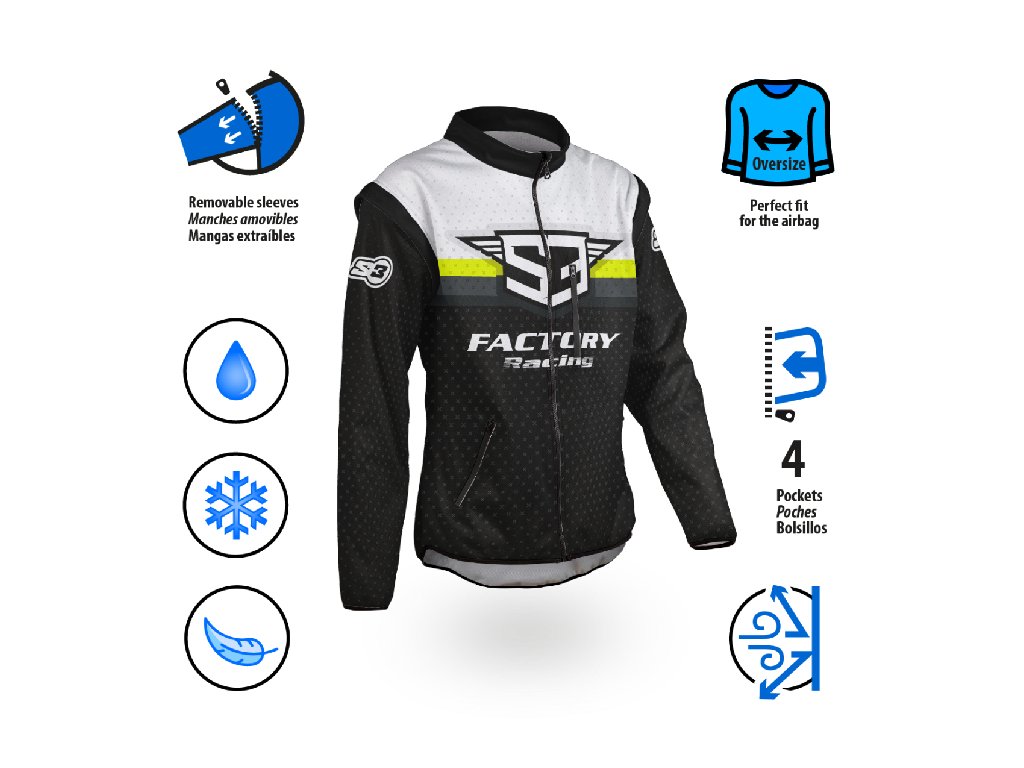 Tato ultralehká technická bunda, speciálně navržená pro Rally, je ideální pro dlouhé dny na motorce. Její volný střih umožňuje dokonalé přizpůsobení na jakýkoli typ airbagu, aniž by omezovala pohyblivost, a zároveň zajišťuje pohodlí a ochranu.